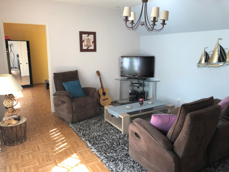 - 📺 Salon / salle à manger 20 m² (accès terrasse), TV / Hi-fi, lecteur DVD / Blu-ray.