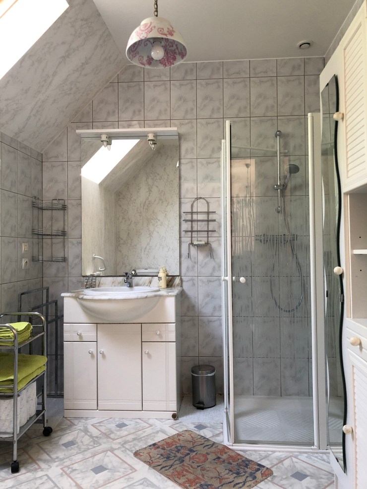 - 🛁 Salle de bain 7 m2, douche, serviettes, toilettes.