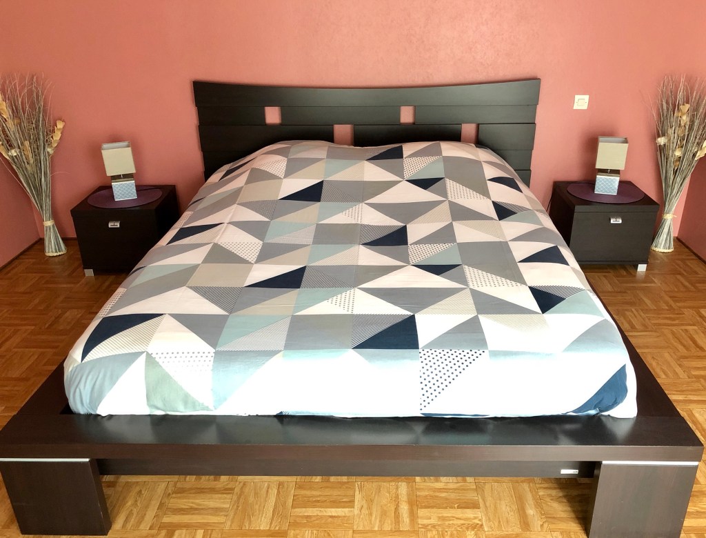 - 🛌 Chambre à coucher 16 m2 (accès terrasse), Lit double (160×200) linge de lit, armoire.